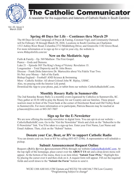 © 2019 Catholic Radio in South Carolina - (864) 877-8458 - WCKI Public Files - WLTQ Public Files - Public File Help